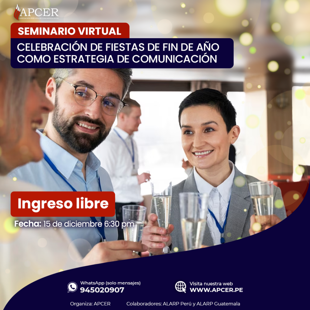 CURSO ESPECIALIZADO: PLANEAMIENTO ESTRATÉGICO DE LA COMUNICACIÓN – PROTOCOLO INSTITUCIONAL Organiza: APCER Duración: 6 sesiones (síncronas y asíncronas) PLANEAMIENTO ESTRATÉGICO DE LA COMUNICACIÓN (4 SESIONES) PROTOCOLO INSTITUCIONAL (2 SESIONES) Modalidad: virtual Master Class: 24 de julio Certificación digital por 40 horas académicas Objetivos del Curso: Desarrollar habilidades para la aplicación del protocolo como herramienta de gestión de las relaciones públicas con […]
