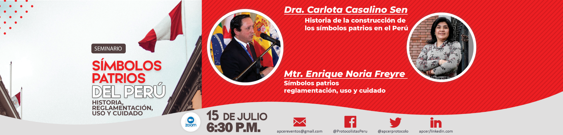 Con esta finalidad APCER organiza el seminario Símbolos Patrios del Perú; historia, reglamentación, uso y cuidado con la finalidad de contribuir a un uso pertinente de nuestros símbolos en las instituciones públicas y privadas del país, así como en actos y ceremonias. El evento se dirige a funcionarios de comunicación, relaciones públicas, eventos y protocolo. Los interesados pueden inscribirse en el siguiente enlace: