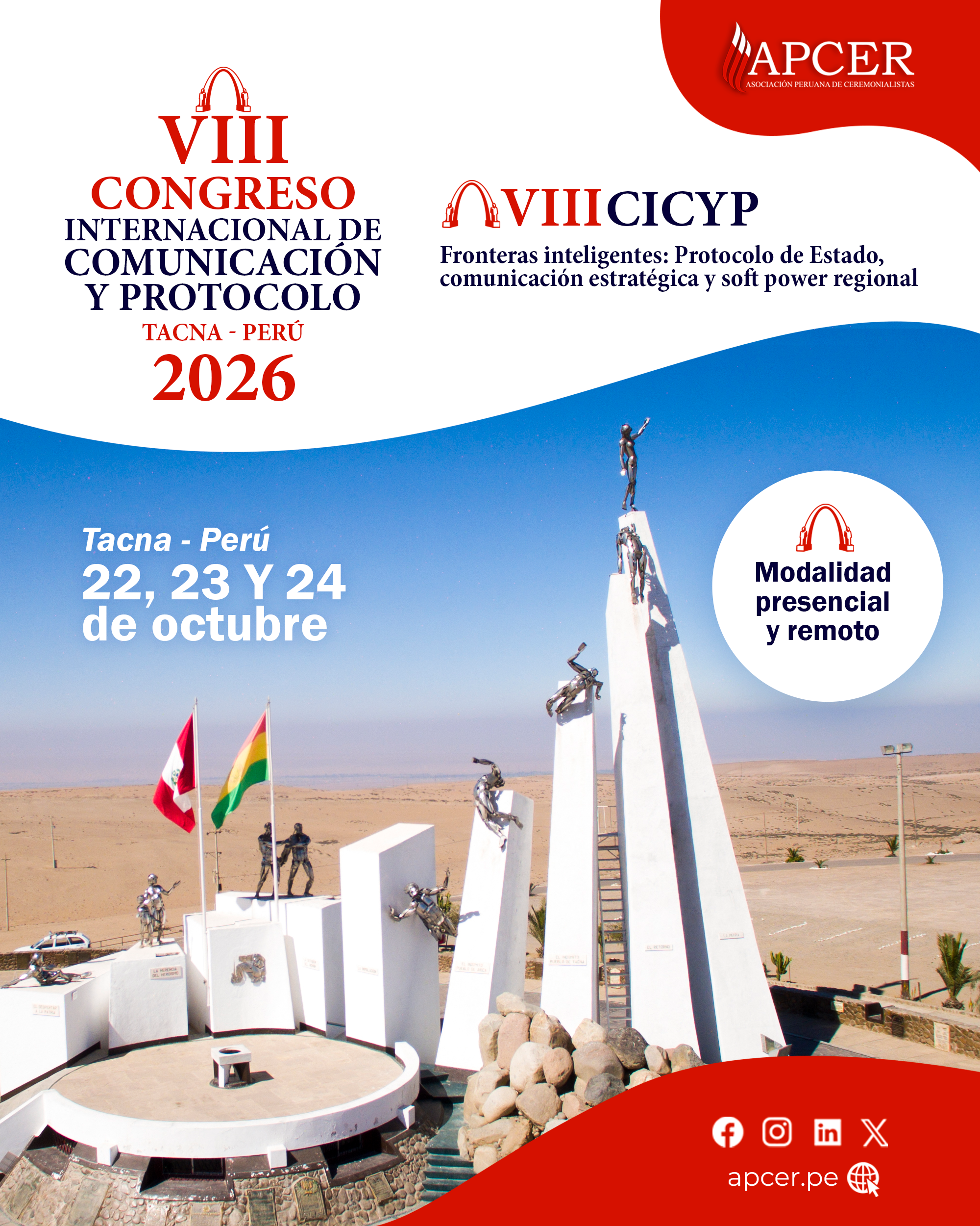 En mi calidad de presidente de la Comisión Organizadora, es un honor extenderles la más cordial invitación al VIII Congreso Internacional de Comunicación y Protocolo, un evento que este año se rige bajo el lema: «Fronteras inteligentes: Protocolo de Estado, comunicación estratégica y soft power regional».
